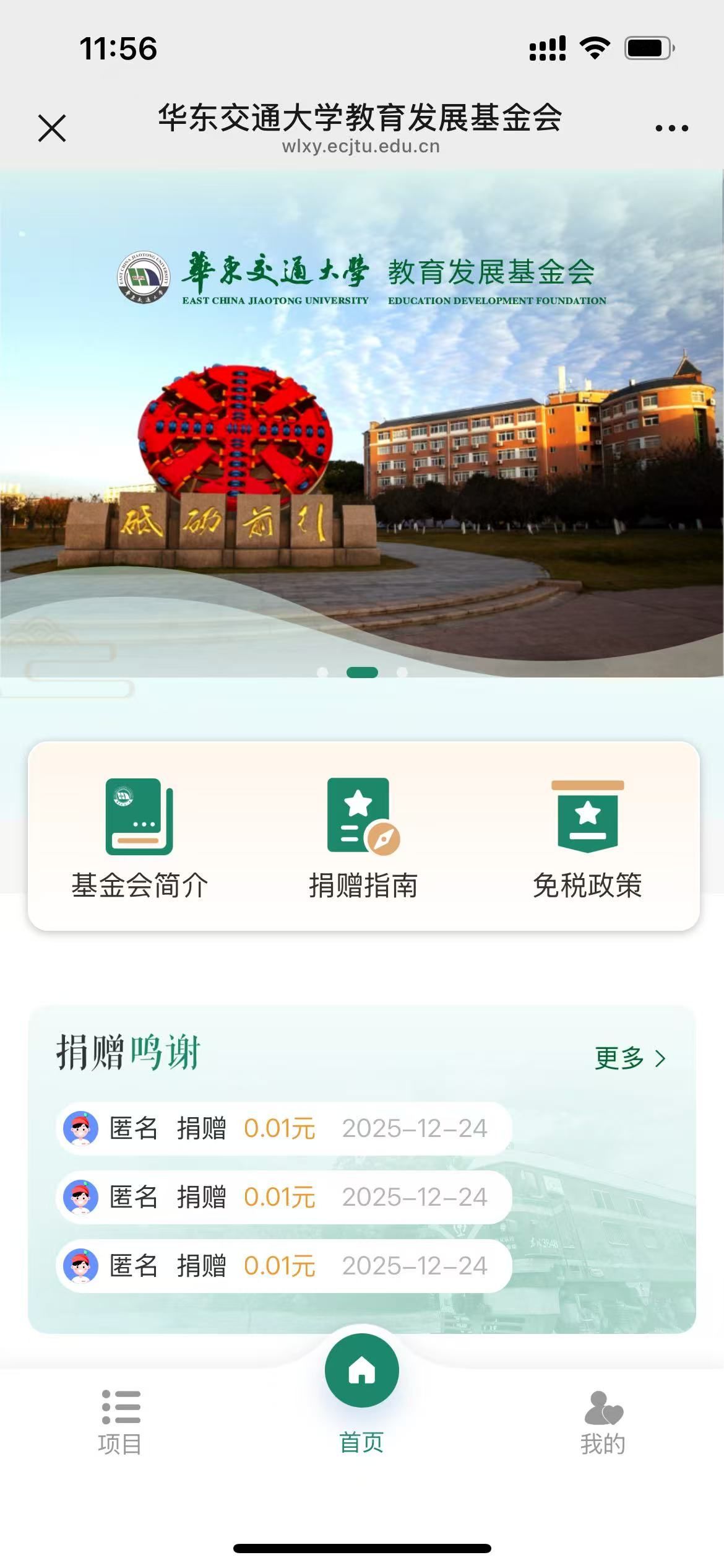 一、微信扫描二维码进入“华东交通大学教育发展基金会”捐赠页面