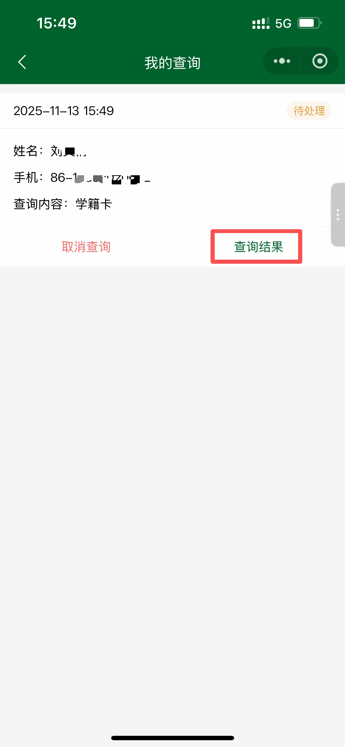 四、在"我的查询"里,可以查看查询结果