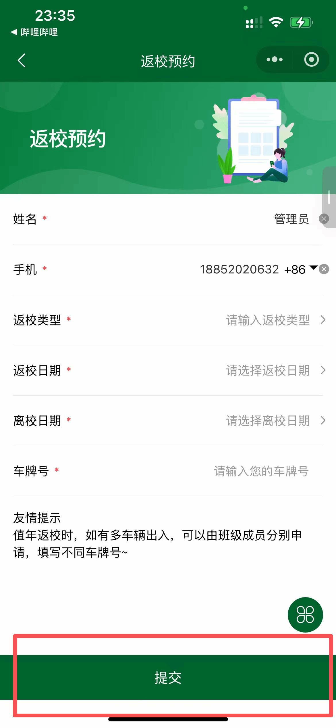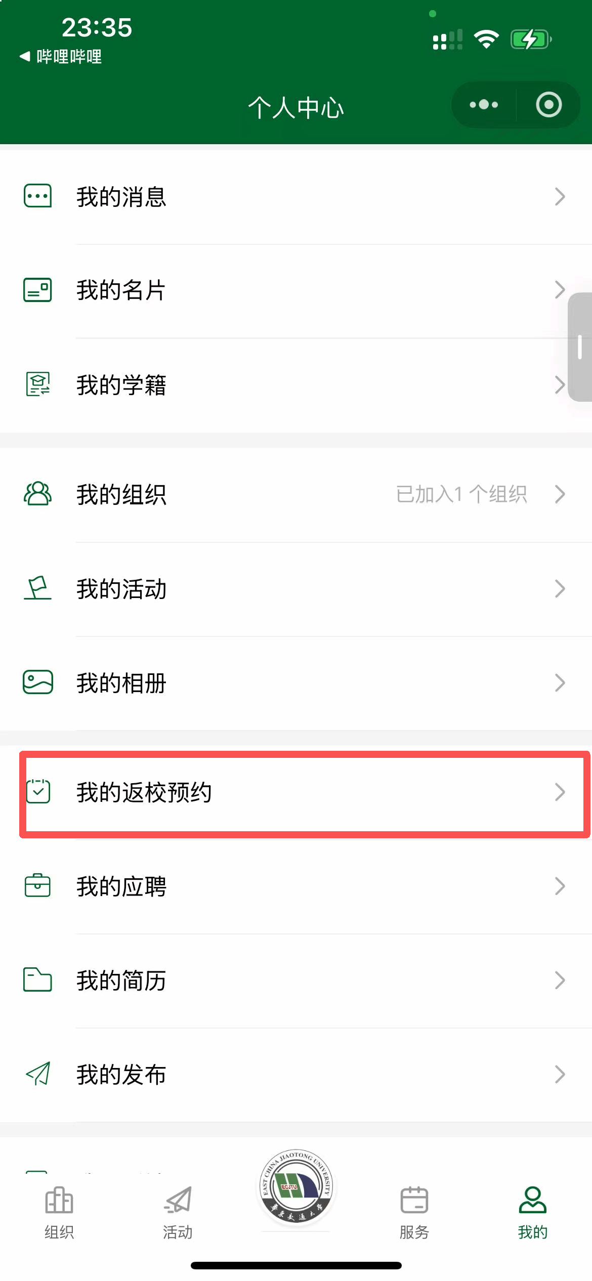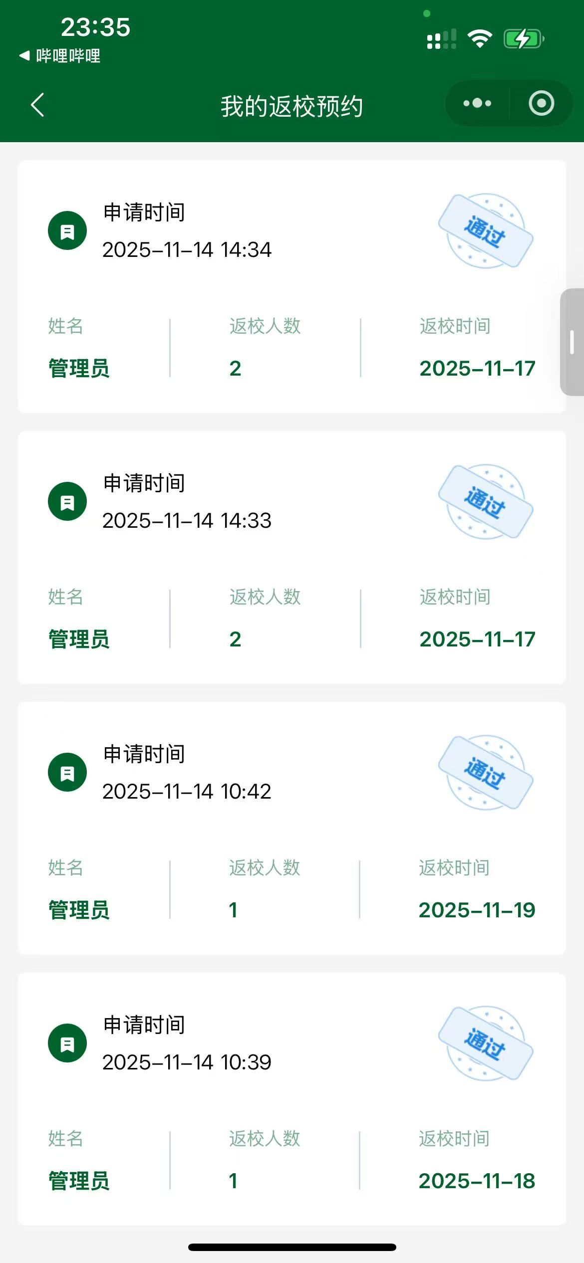 四、提交后,可在【我的】-【我的返校预约】查看预约记录及审核状态。